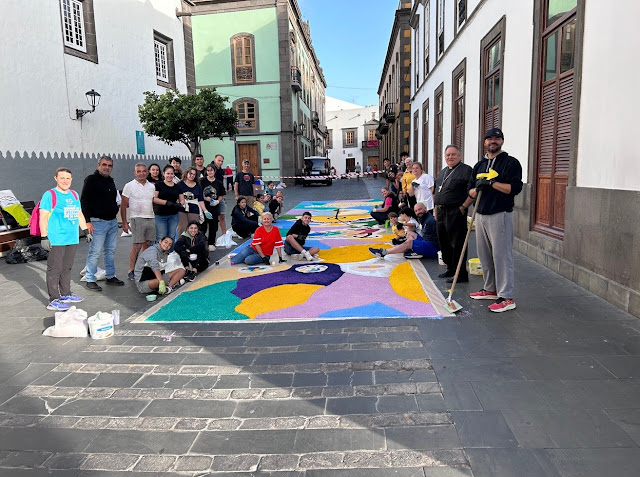 El sábado 1 de junio profesores y alumnos de los tres Institutos Diocesanos, se reunieron para crear nuestra alfombra de sal para el paso de la procesión del Corpus Christi del domingo. El Excmo. y Rvdmo. Sr. D. José Mazuelos Pérez, Obispo de la Diócesis de Canarias, pasó un rato con nosotros y felicitó a los profesores, alumnos y familias que habían colaborado con esta antiquísima tradición de nuestra ciudad.