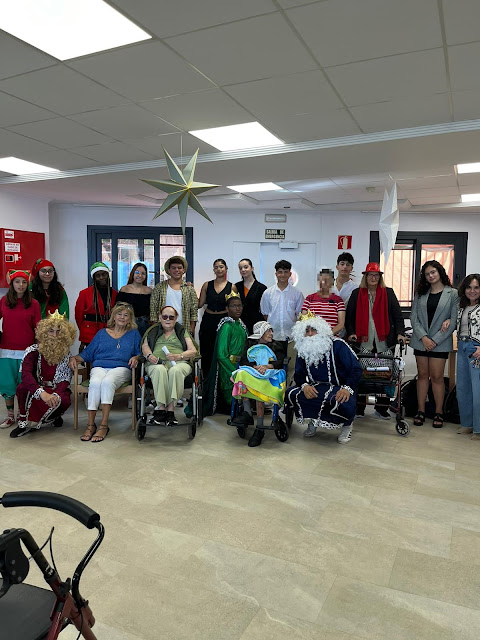 El pasado 14 de diciembre, el grupo de vida de nuestro centro «Pan y Rosas» tuvo la oportunidad de visitar a los mayores de la residencia sociosanitaria Queen Victoria. Nuestro alumnado, se convirtió por unos momentos en Reyes magos, elfos y grupo de animación que llevó hasta estos mayores el mensaje cristiano de la navidad, y en forma de un ratito de acompañamiento y alegría. Representaron una pequeña escenificación navideña y repartieron entre los usuarios de la residencia cartas de felicitación que el alumnado de primero de bachillerato había escrito para ellos y ellas de la mano de nuestra profesora de religión Pepi.
